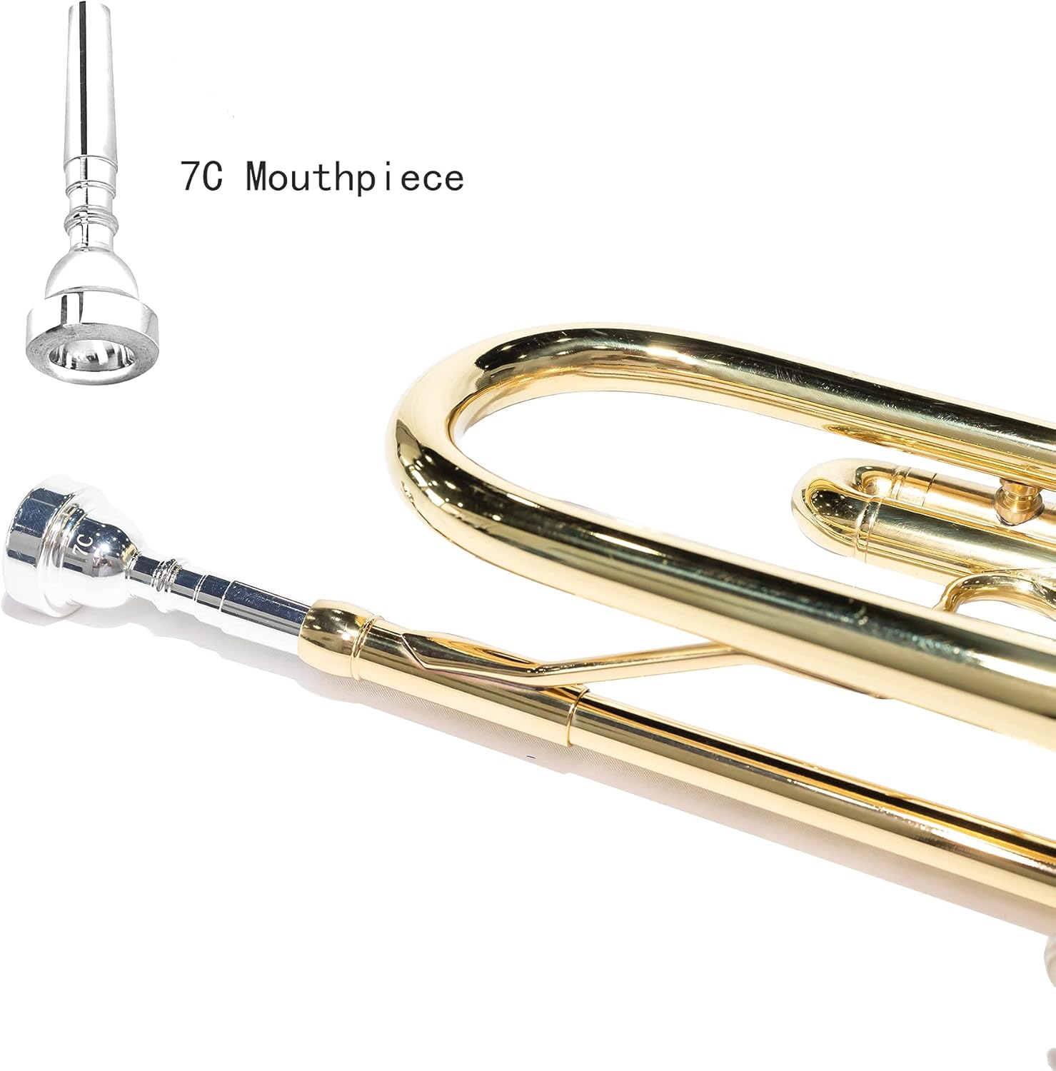 · Trumpet Package Includes: silver plated 7C mouthpiece, and trumpet accessories that include soft polishing cloth, Cleaning Kit, Valve Oil and a pair of gloves.