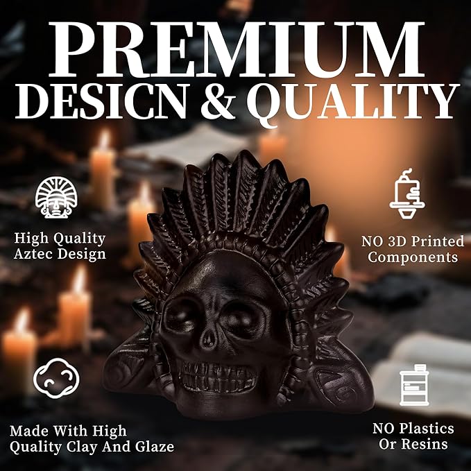 - CRAFTSMANSHIP: Carefully sculpted with detailed features including skull motifs and traditional Aztec patterns